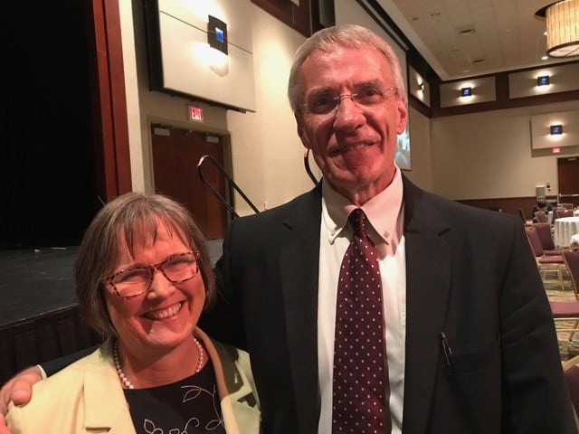 Minnesotan farmer Paul Zimmerman extended a firm handshake and greeting on behalf of his daughter to Dr. David Kohl, a Professor Emeritus from Virgina Tech. Zimmerman’s daughter is a likely successor to their farm. She started her mentorship with Dr. Kohl’s insights in Mankato, MN years ago when she wrote notes as a high schooler in the audience. Kohl noticed her with fanfare. Her dad reports that she now works for Cargill and will soon be getting her Ag MBA at Cornell where Kohl did his masters and Ph.D. Dr. Kohl was clearly delighted to hear this news saying, “This just made my day!”