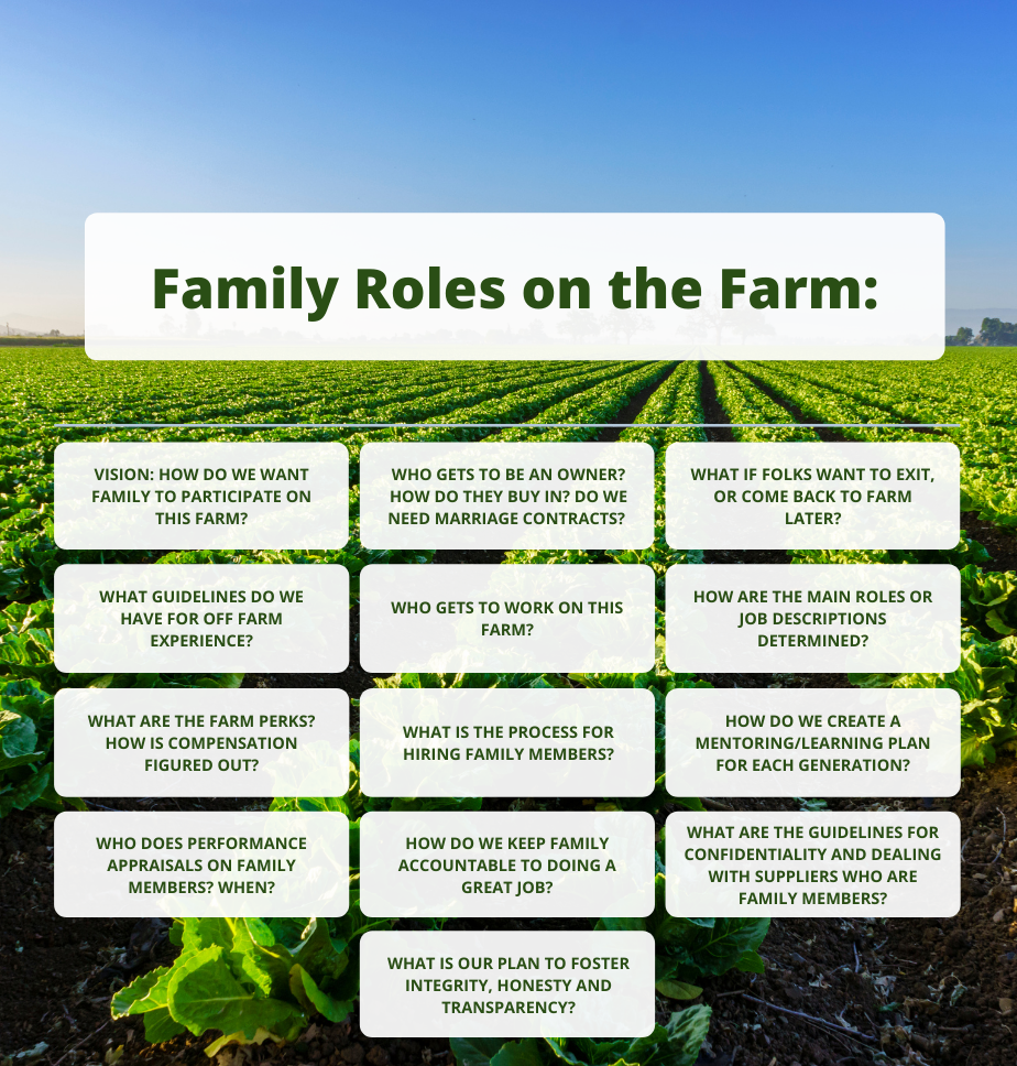 As I have coached farm families this winter they have appreciated the template of a family participation plan, or what I call the family roles guide.
